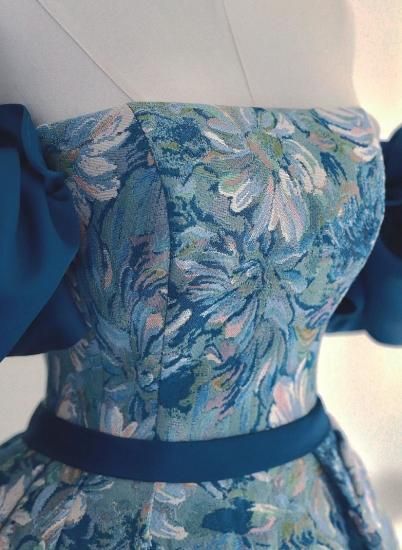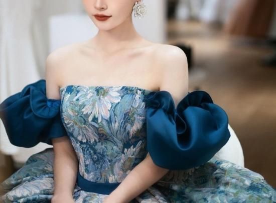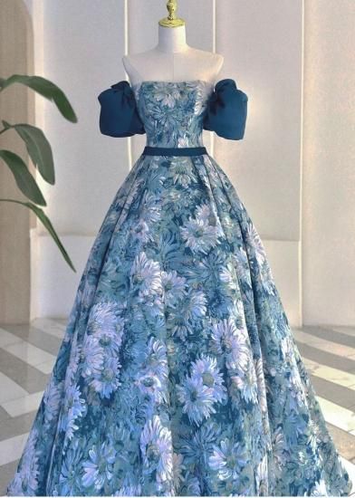 鮮やかな花柄が華やかさを演出するロングドレス。